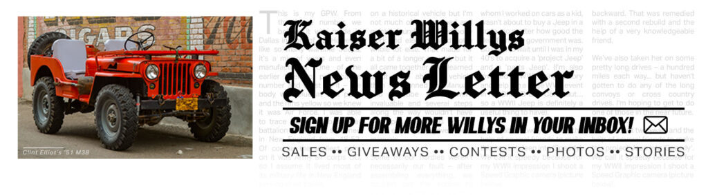 We feature a different Willys Jeep each week, plus offer discounts, guides and much more. Entered one of our contests or giveaways? Get winner announcements here! Stay in the loop - Subscribe today!